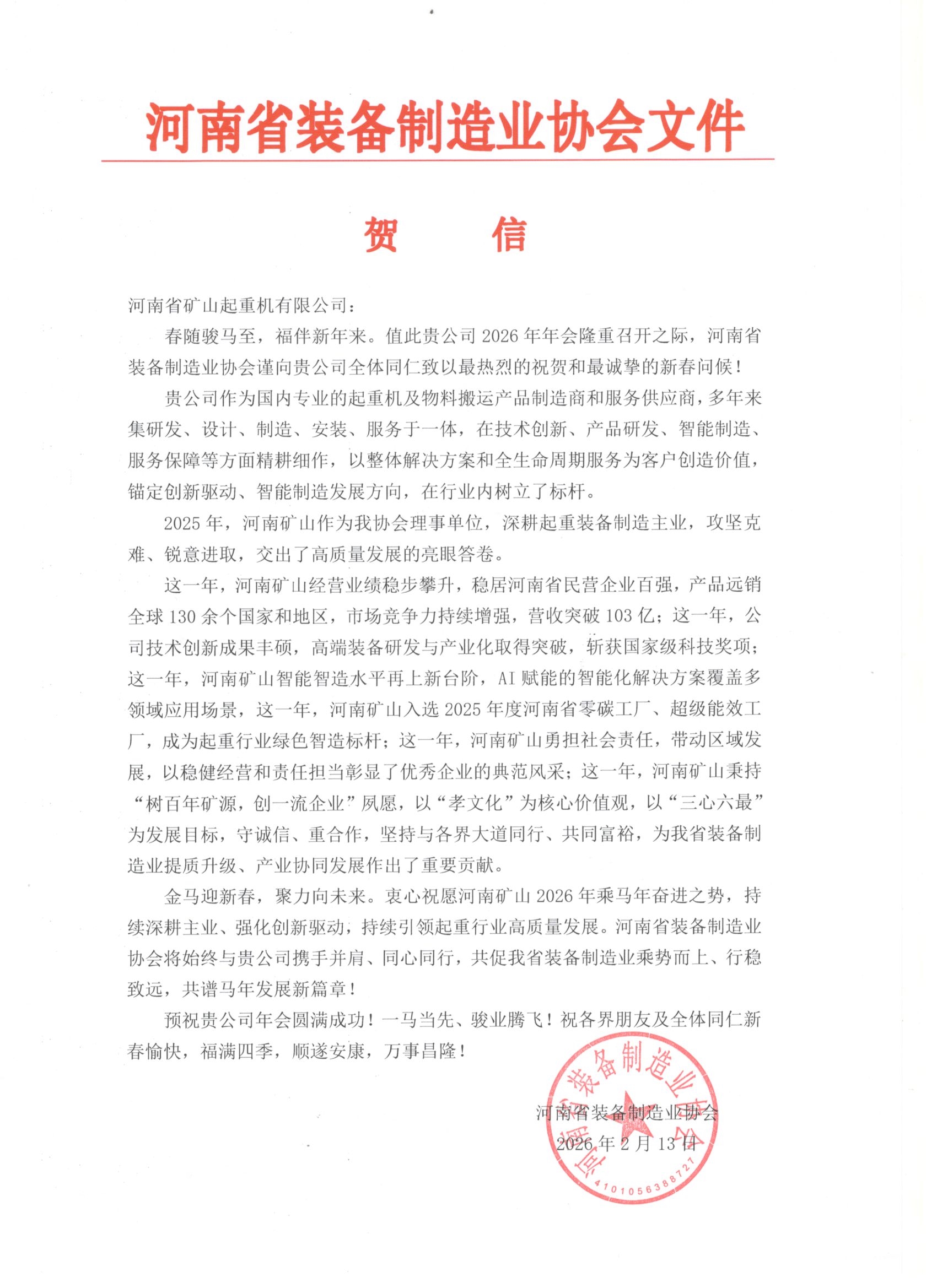 大道同行,共同富裕。值此辞旧迎新之际,河南矿山2025年度企业年会盛典即将隆重启幕。行业协会、科研院所、金融机构等各合作单位纷纷致贺,预祝盛会圆满举行、共赞企业发展成就。