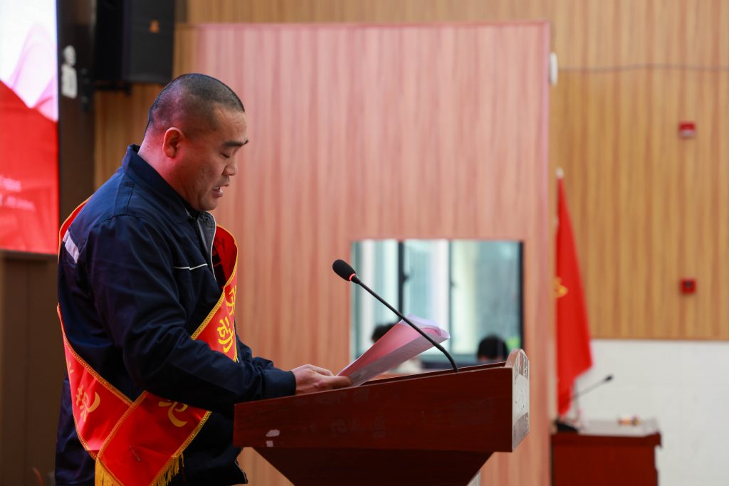 宣讲中,李杰结合自身十五年起重机械装配生涯,分享了从普通学徒成长为行业技术专家的蜕变历程。他讲述了带领班组攻克超大吨位起重机等重大项目难题,独创“动态预演工作法”,将生产周期大幅压缩的创新实践,以及深耕技术革新取得的重要创新成果的奋斗经历。