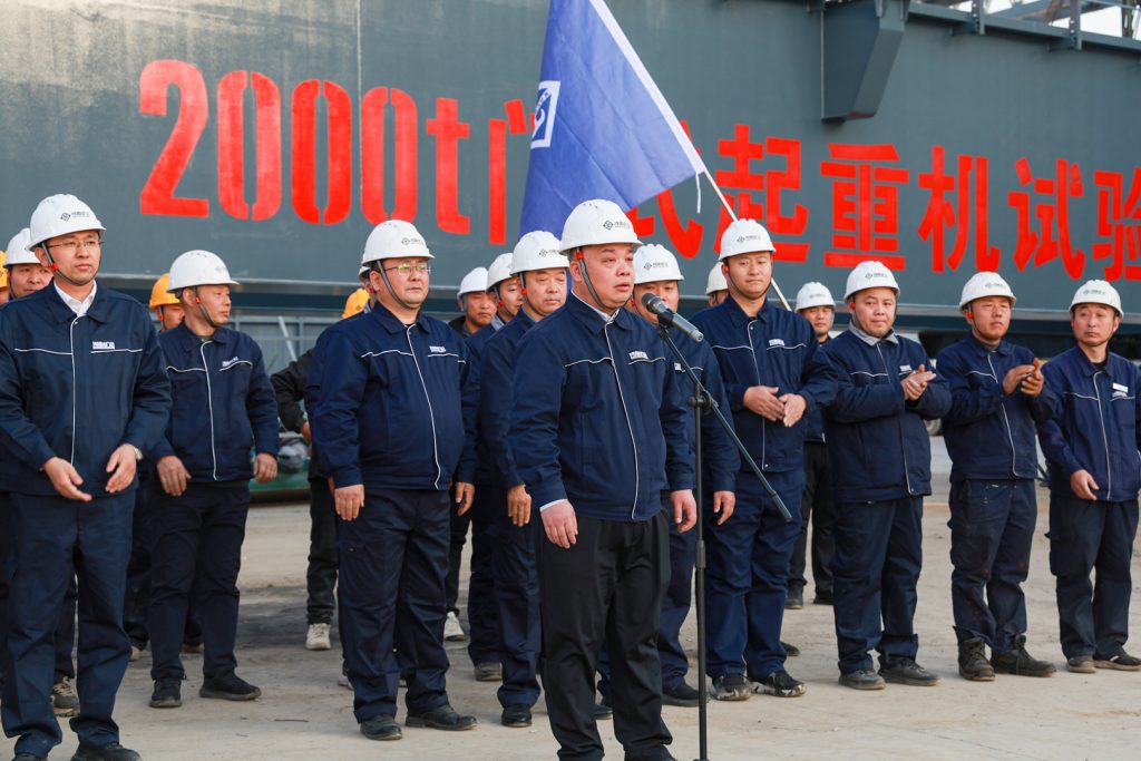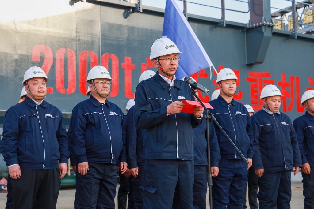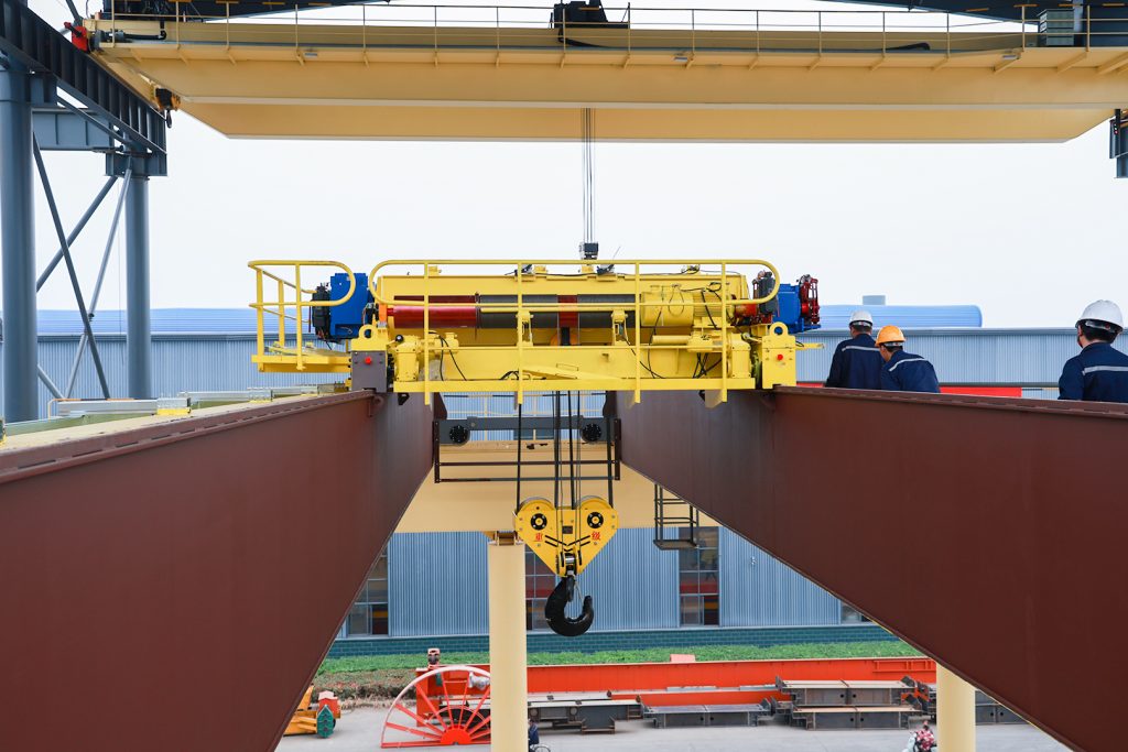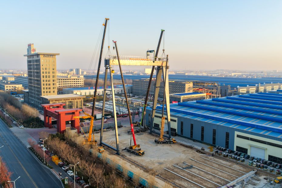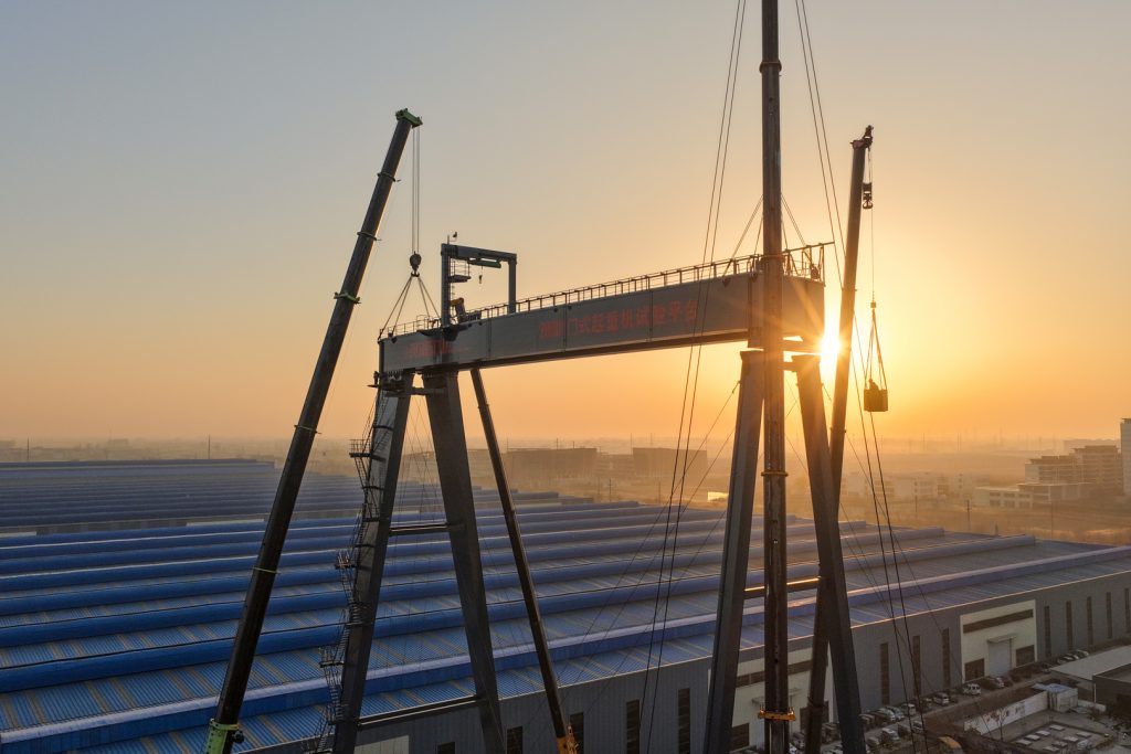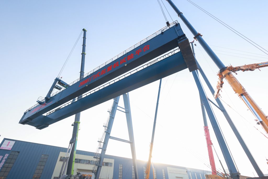 11月29日,河南矿山2000t门式起重机试验平台主梁在公司智能产业园顺利起吊。